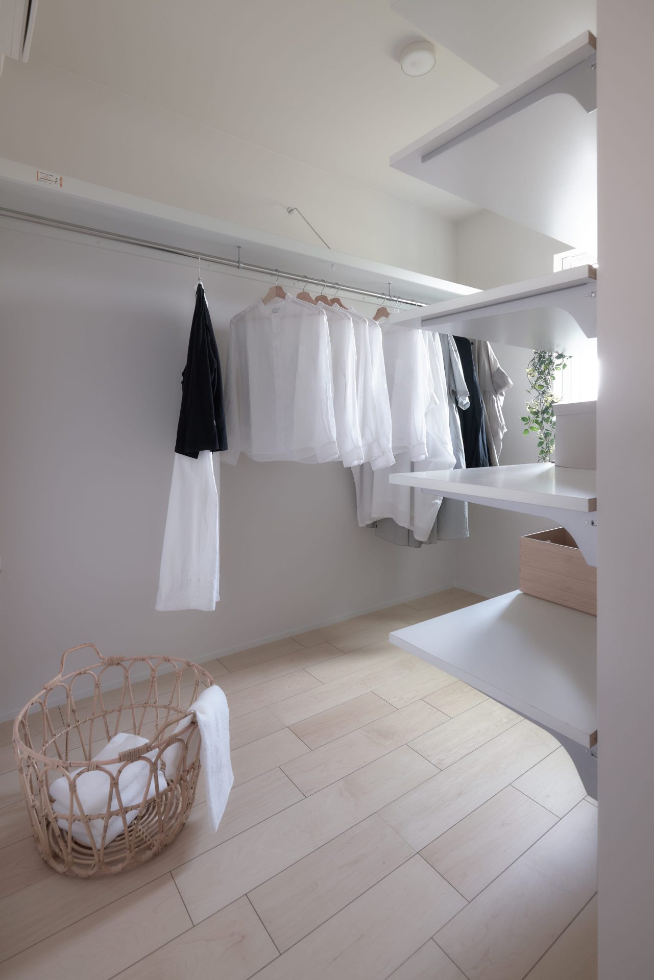サニタリーはあえて扉を設けないことで、将来車椅子が必要になった際もスムーズに移動できるバリアフリーな住まいに。